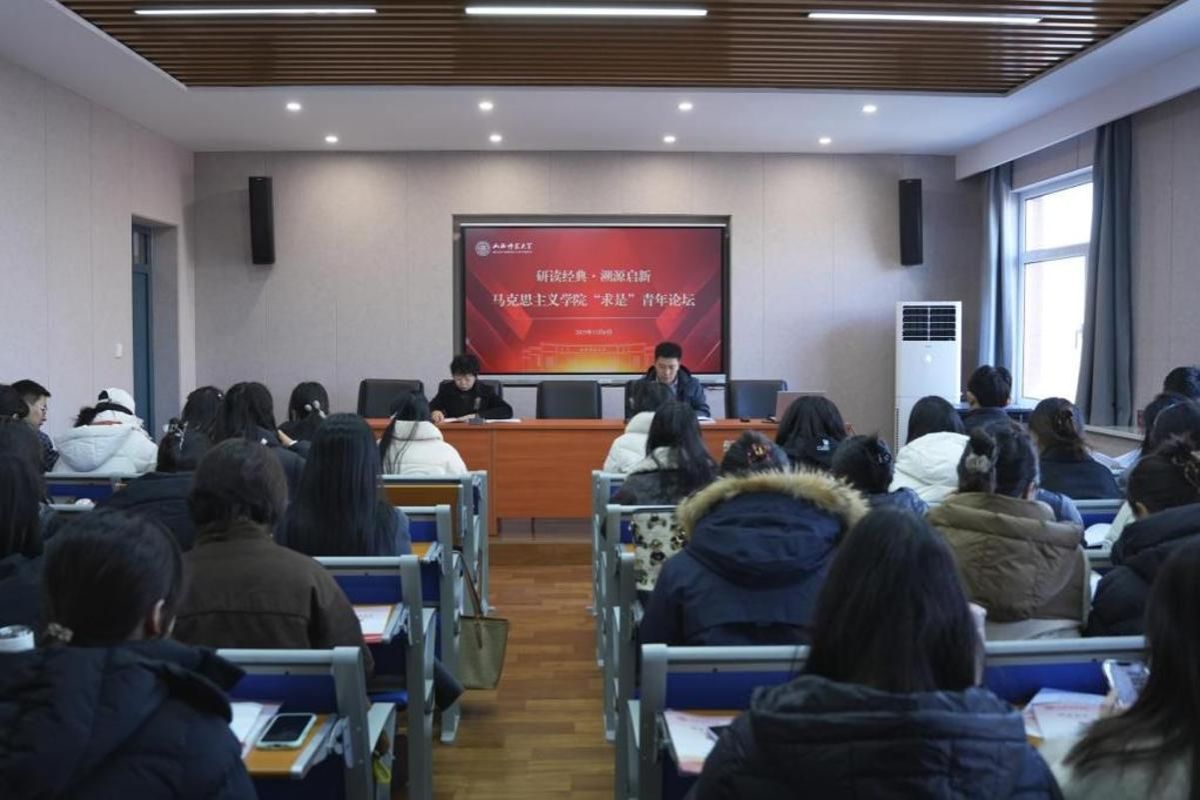 12月6日,马克思主义学院“求是”青年论坛在1505报告室举办。本次论坛以“研读经典·溯源启新”为主题,汇聚学院青年师生,共同探讨马克思主义经典著作的当代价值与实践路径。论坛由副院长吉志强教授主持。